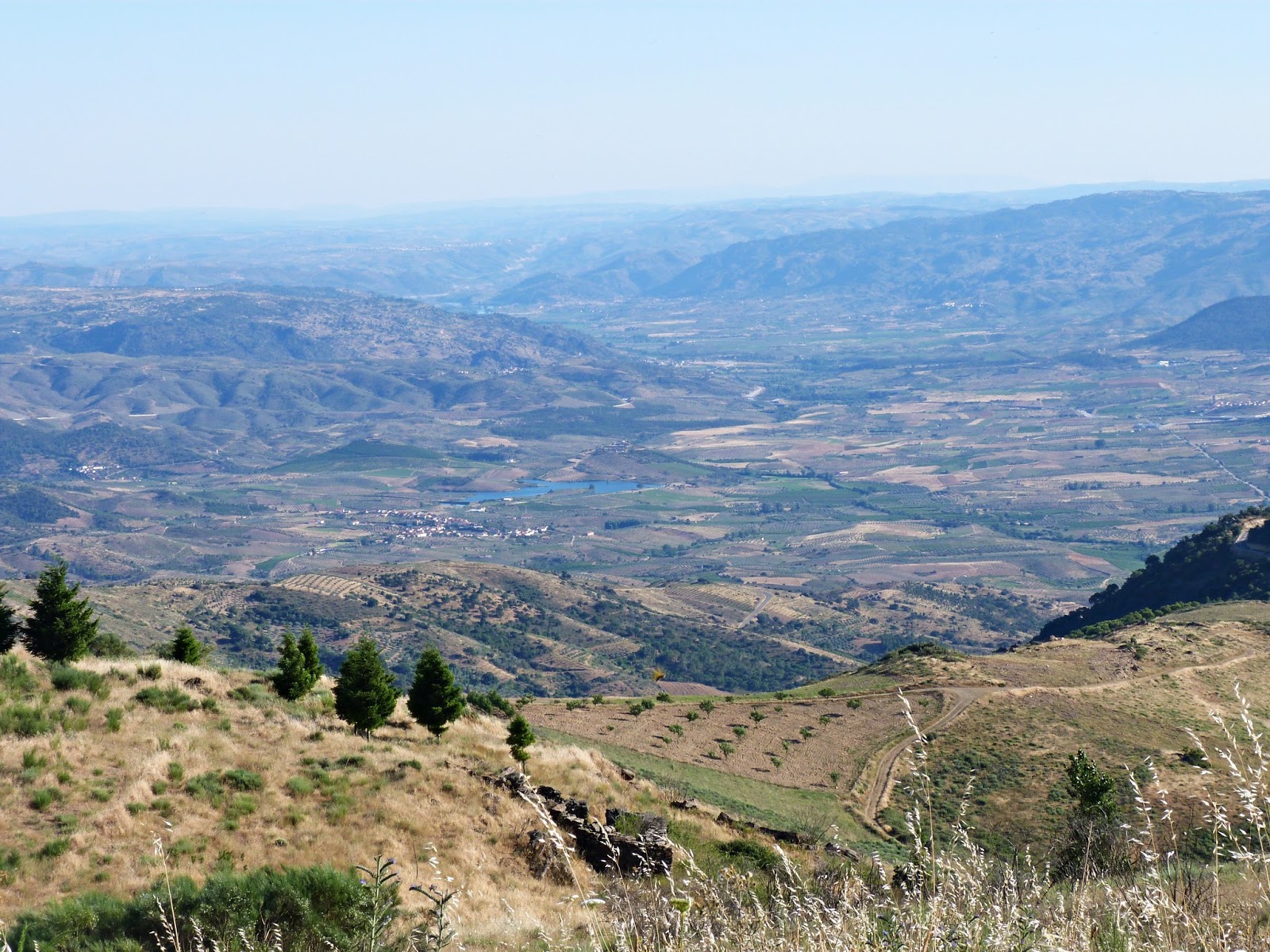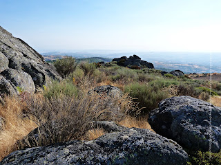 Subi a serra... de carro! Como sempre, atrasada para o almoço. O que vale é que, nos domingos, se dá alguma folga ao relógio... Depois do café - em cafeteira italiana, que é como eu mais gosto dele!-, sentei-me, num convívio exclusivo de mulheres, na varanda.Dali, pode ver-se grande parte da aldeia, os campos e outras terras distantes- sentimo-nos águias de atalaia.Naquele lugar, é impossível negar que a terra é redonda.Entre palavras simples, comemos nozes(algumas ainda a assoalhar) e ameixas secas, enquanto nos entregávamos, sem resistência, ao sol tímido de Outubro.Percebi, com felicidade, que já começa a notar-se, nas terras de cultivo e nos lameiros, que a chuva é uma benção.